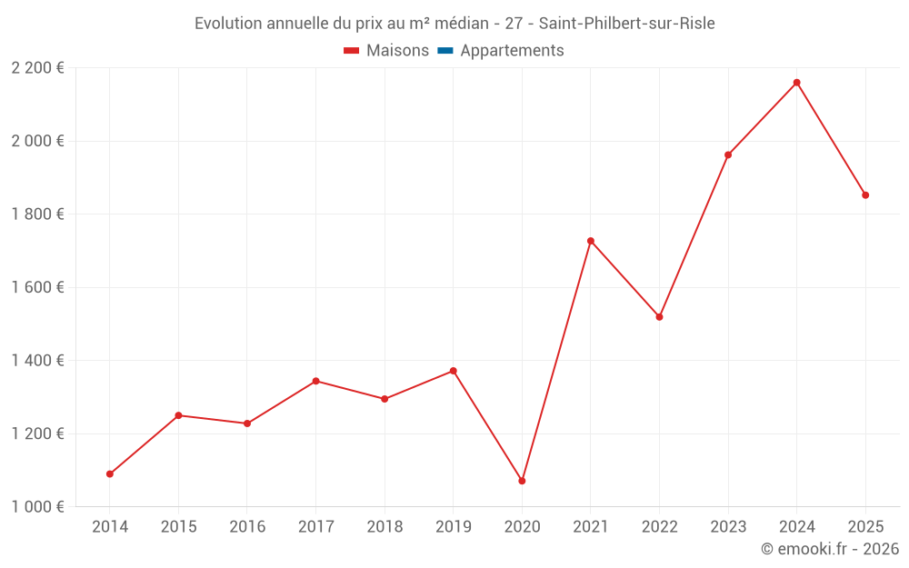 Le prix médian sur les 20 transactions de maisons des 24 derniers mois dans la commune de Saint-Philbert-sur-Risle était de 1 912 € par mètre carré pour une valeur foncière médiane de 146 950 €. Sur cette période 60% des transactions se sont situées entre 1 149 et 2 434 € par mètre carré (du 2ème au 8ème déciles).