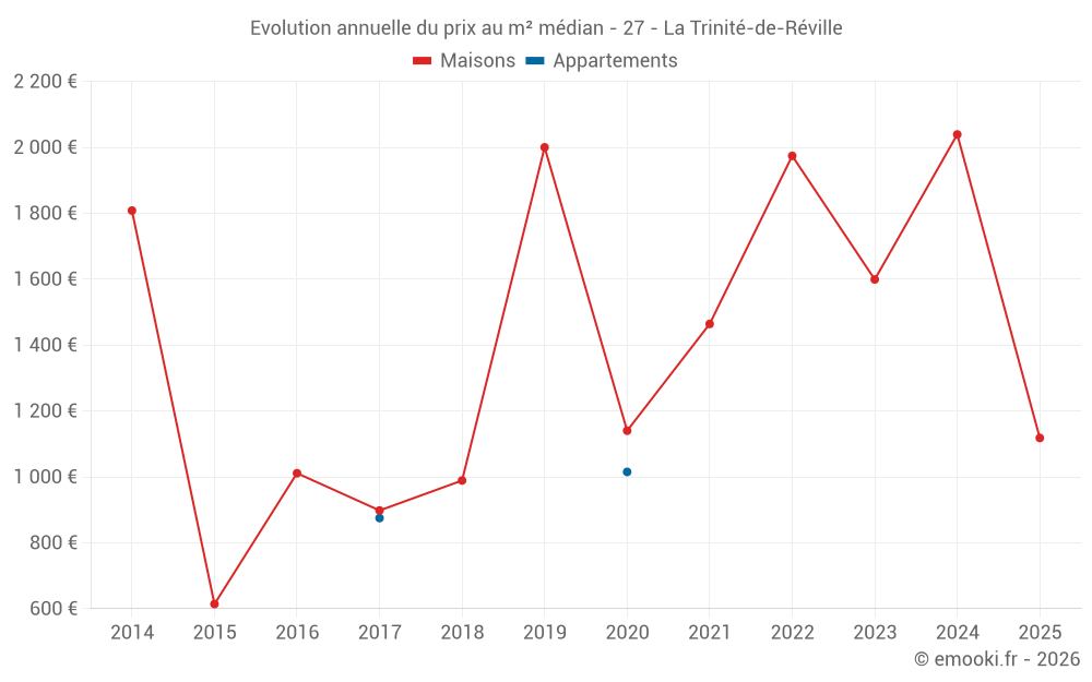 Le prix au m² des maisons a diminué de 45% depuis 1 an, mais il a augmenté de 24% en 8 ans.
