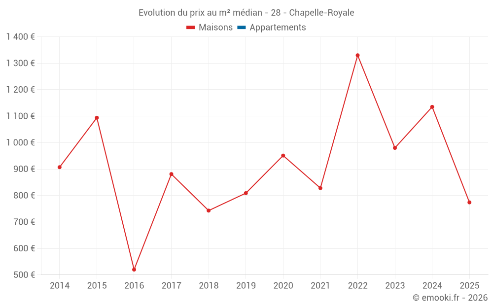 Carte des prix de l'immobilier dans la commune de Chapelle-Royale, choississez une section pour voir les transactions par parcelle.