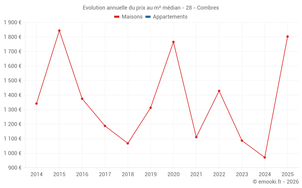 Evolution du prix au m² médian des maisons