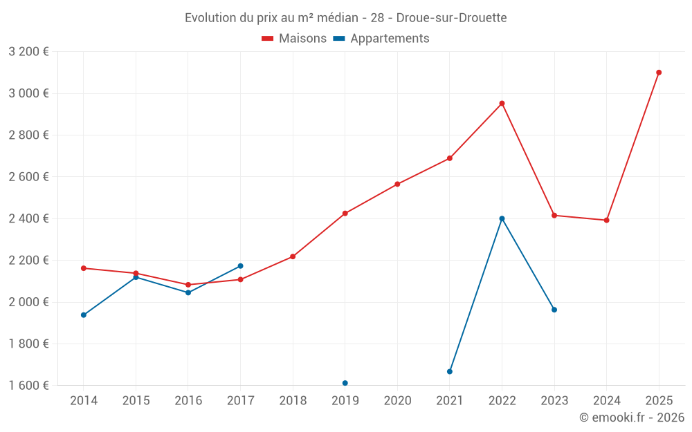 Attention, dernière année incomplète. Projections effectuées sur la base des proportions entre semestres de l'année précédente au niveau départemental/national et par catégorie de bien.