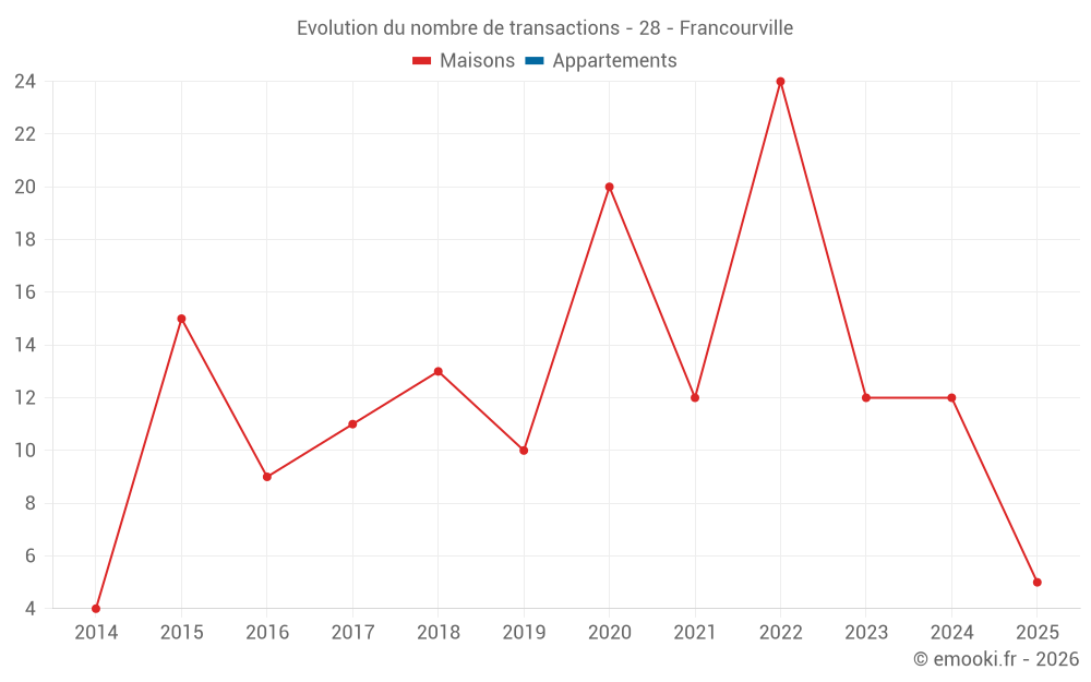 Attention, dernière année incomplète. Projections effectuées sur la base des proportions entre semestres de l'année précédente au niveau départemental/national et par catégorie de bien.