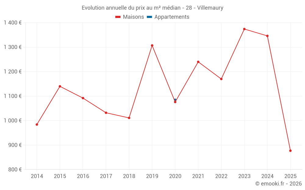 Le prix médian sur les 31 transactions de maisons des 24 derniers mois dans la commune de Villemaury était de 1 181 € par mètre carré pour une valeur foncière médiane de 120 000 €. Sur cette période 60% des transactions se sont situées entre 708 et 1 659 € par mètre carré (du 2ème au 8ème déciles).