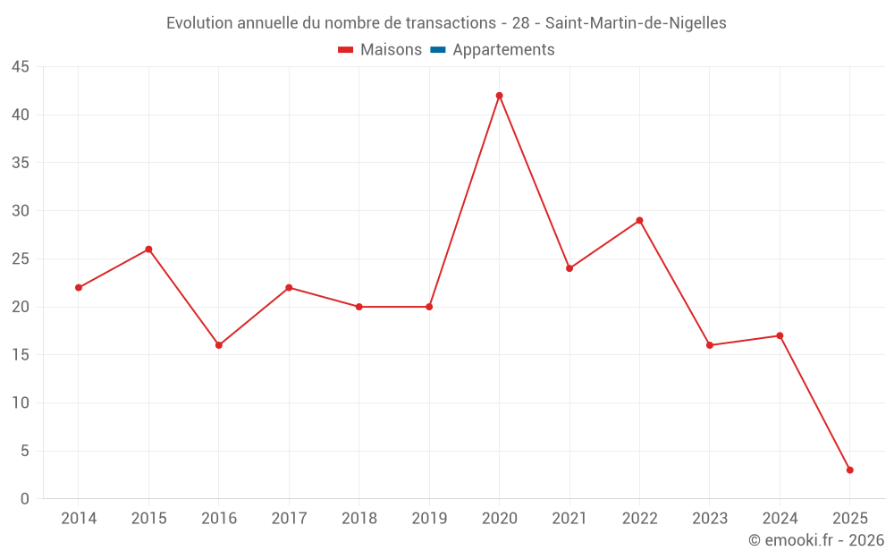 Le prix médian sur les 25 transactions de maisons des 24 derniers mois dans la commune de Saint-Martin-de-Nigelles était de 2 652 € par mètre carré pour une valeur foncière médiane de 270 000 €. Sur cette période 60% des transactions se sont situées entre 2 018 et 3 284 € par mètre carré (du 2ème au 8ème déciles).