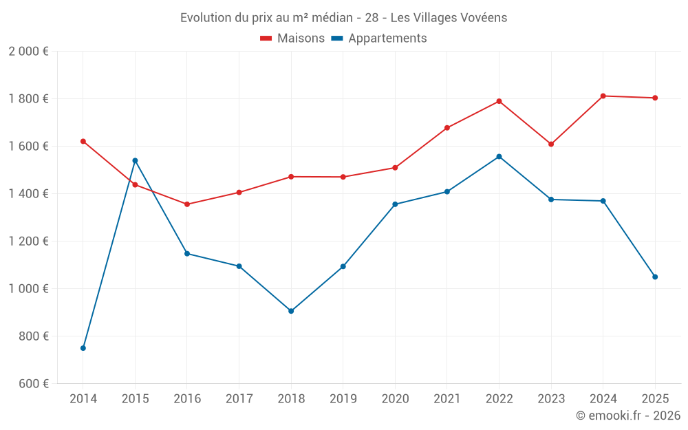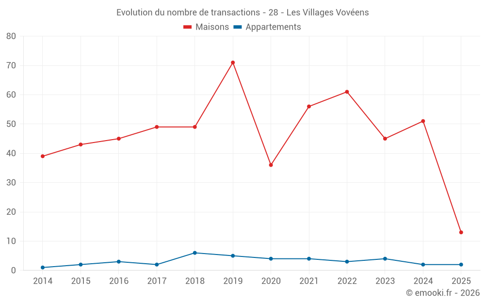 Carte des prix de l'immobilier dans la commune des Villages Vovéens, choississez une section pour voir les transactions par parcelle.