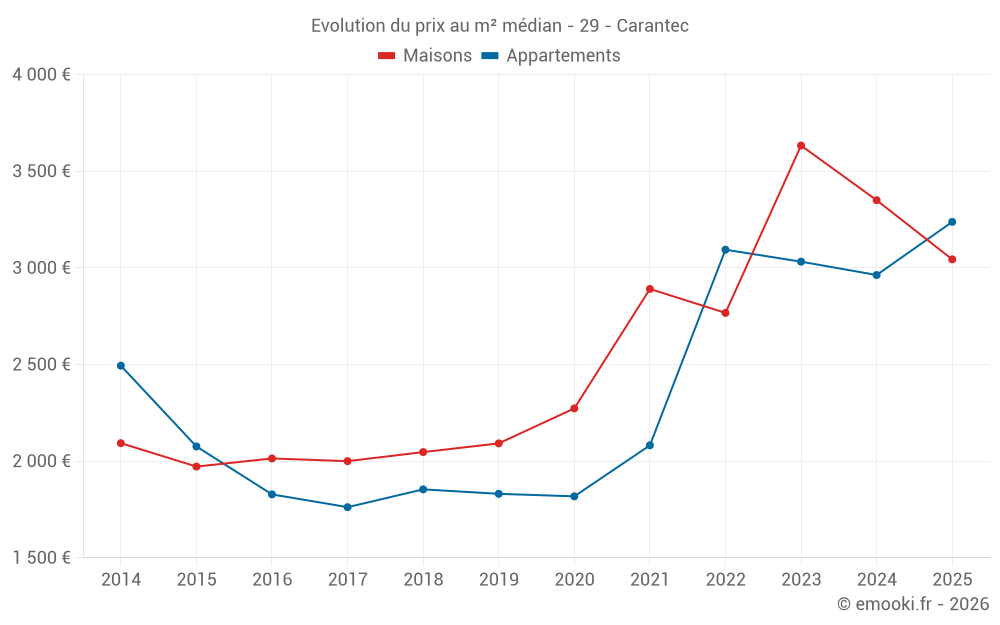 Carte des prix de l'immobilier dans la commune de Carantec, choississez une section pour voir les transactions par parcelle.