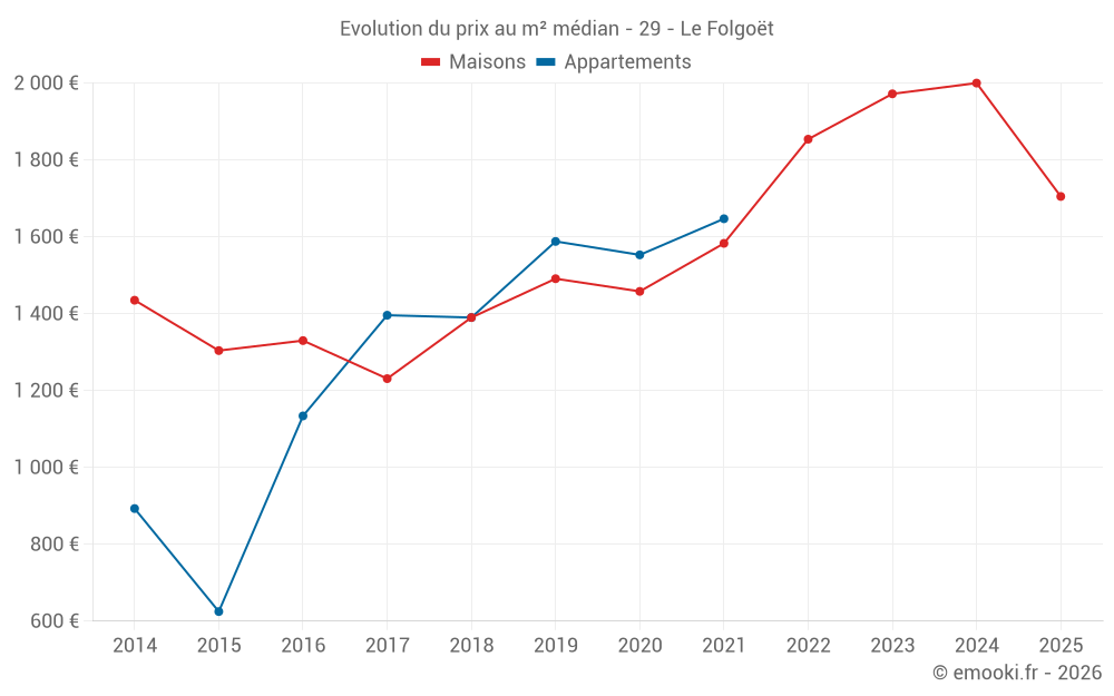 Le prix médian sur les 27 transactions de maisons des 12 derniers mois dans la commune du Folgoët était de 1 981 € par mètre carré pour une valeur foncière médiane de 189 000 €. Sur cette période 60% des transactions se sont situées entre 1 518 et 2 483 € par mètre carré (du 2ème au 8ème déciles).