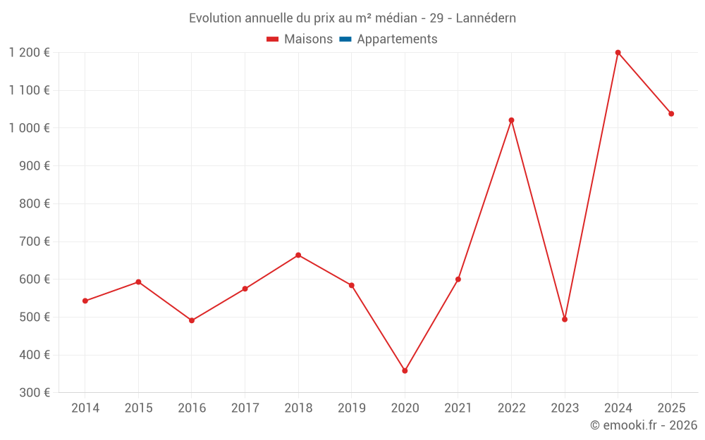 Evolution du prix au m² médian des maisons