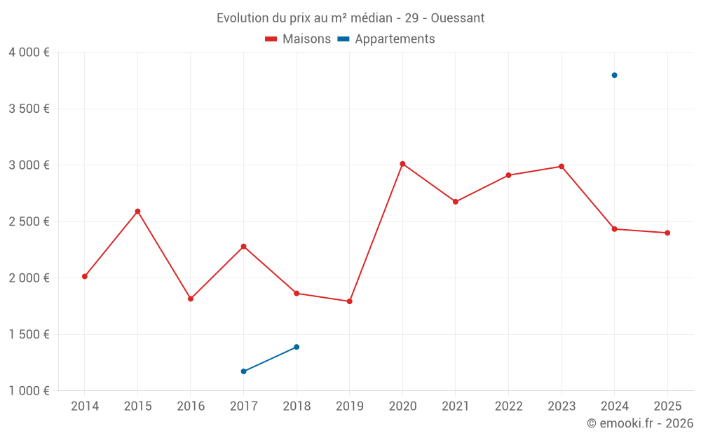 Carte des prix de l'immobilier dans la commune d'Ouessant, choississez une section pour voir les transactions par parcelle.