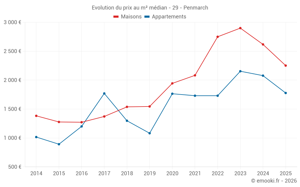 Carte des prix de l'immobilier dans la commune de Penmarch, choississez une section pour voir les transactions par parcelle.