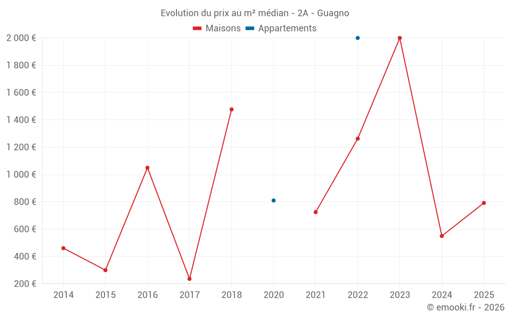 Carte des prix de l'immobilier dans la commune de Guagno, choississez une section pour voir les transactions par parcelle.