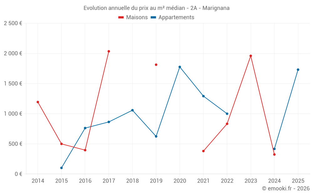 Carte des prix de l'immobilier dans la commune de Marignana, choississez une section pour voir les transactions par parcelle.