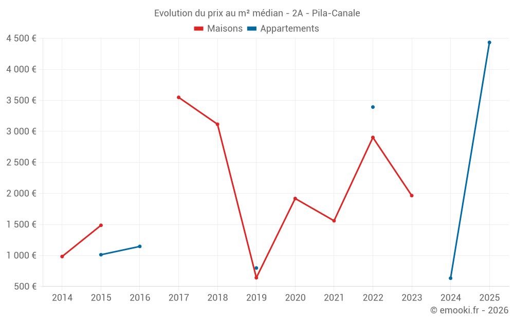 Carte des prix de l'immobilier dans la commune de Pila-Canale, choississez une section pour voir les transactions par parcelle.