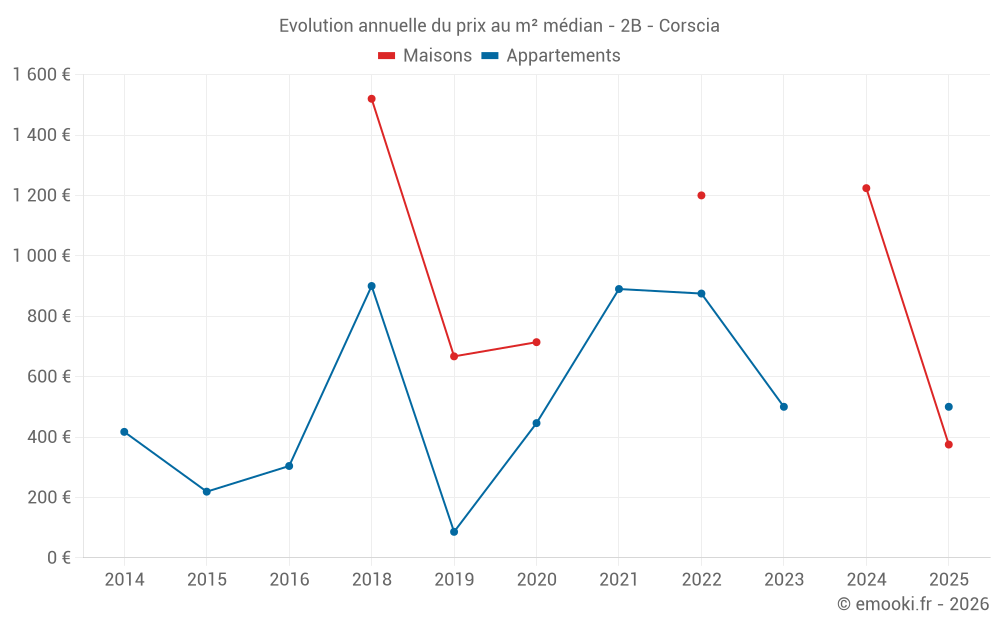 Carte des prix de l'immobilier dans la commune de Corscia, choississez une section pour voir les transactions par parcelle.