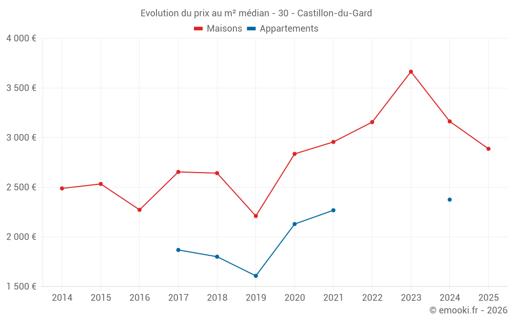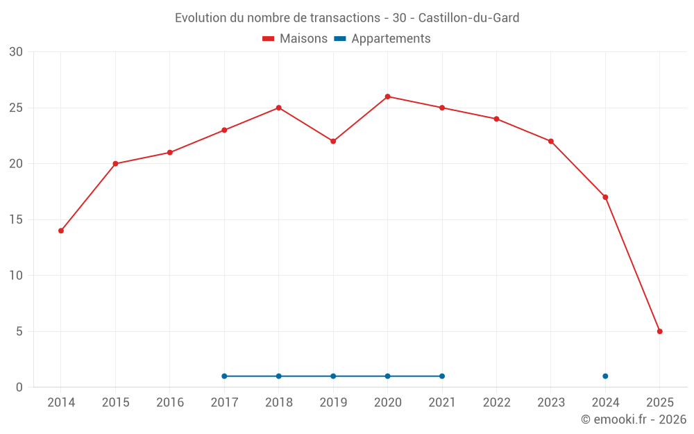Attention, dernière année incomplète. Projections effectuées sur la base des proportions entre semestres de l'année précédente au niveau départemental/national et par catégorie de bien.