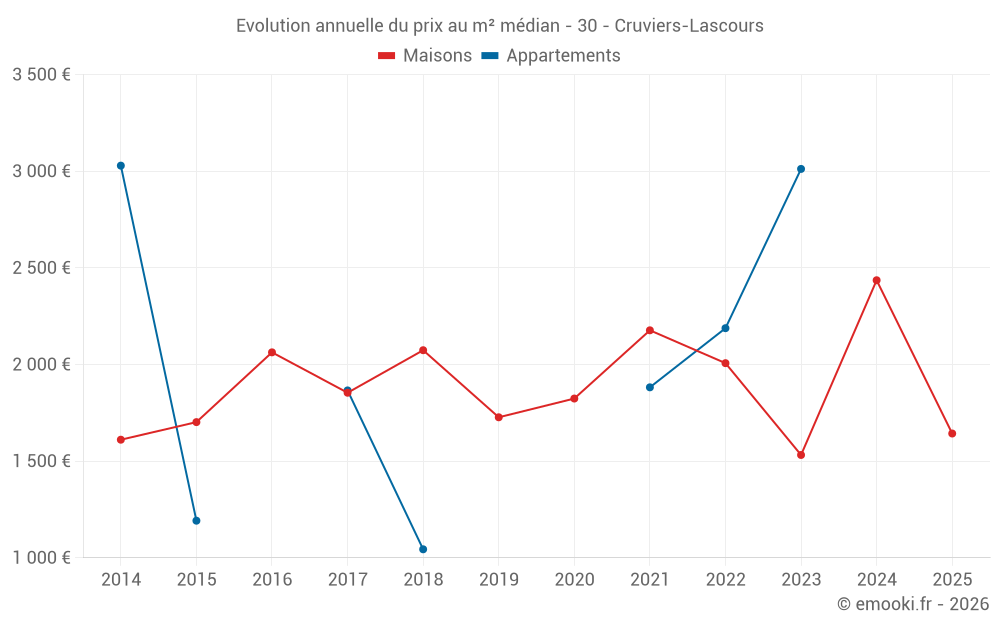 Carte des prix de l'immobilier dans la commune de Cruviers-Lascours, choississez une section pour voir les transactions par parcelle.
