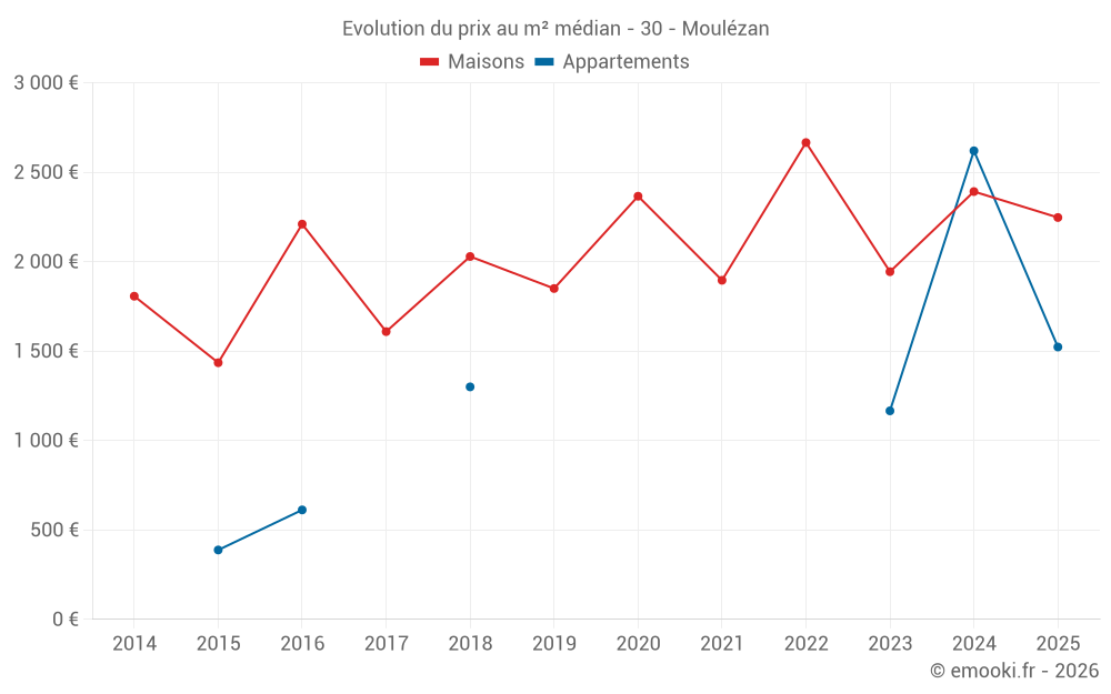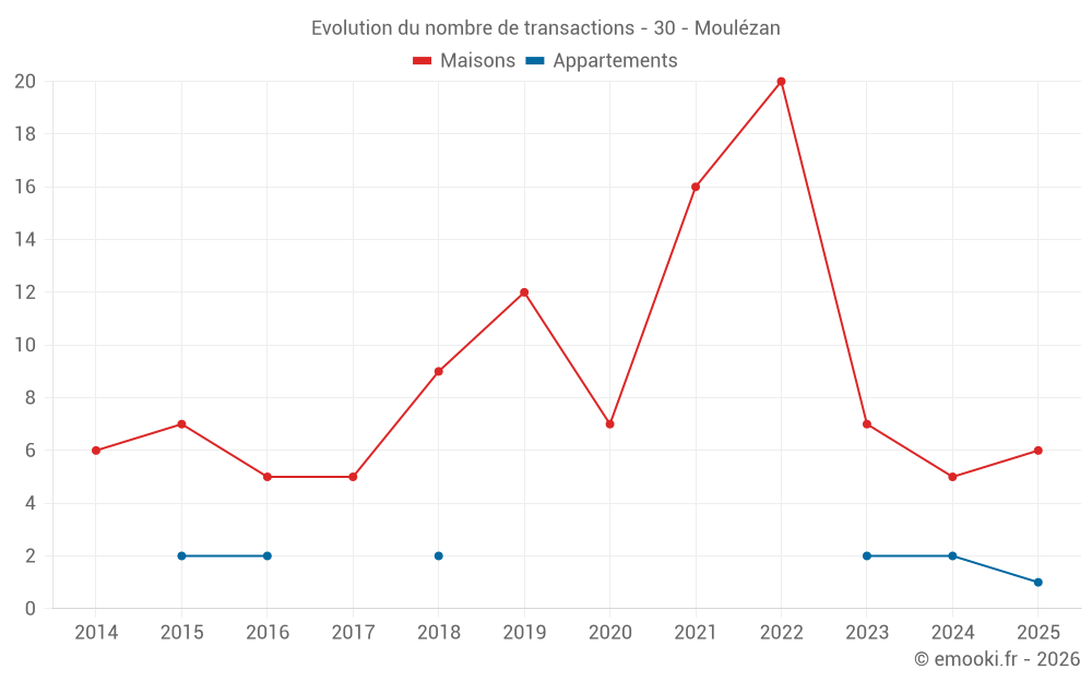 Carte des prix de l'immobilier dans la commune de Moulézan, choississez une section pour voir les transactions par parcelle.