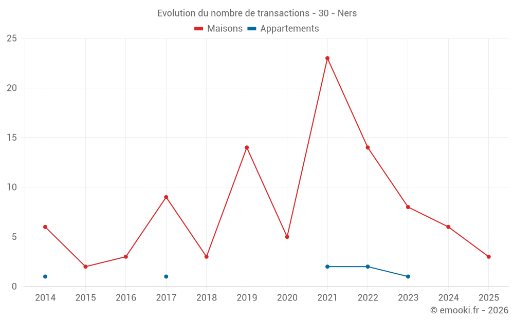 Carte des prix de l'immobilier dans la commune de Ners, choississez une section pour voir les transactions par parcelle.