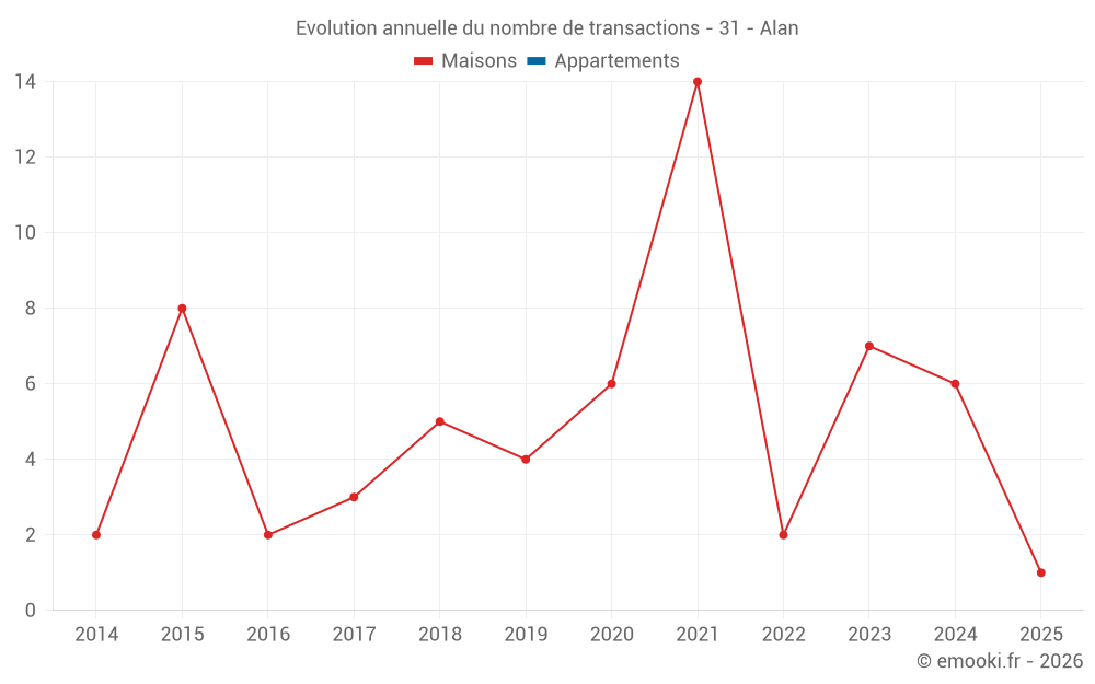 Carte des prix de l'immobilier dans la commune d'Alan, choississez une section pour voir les transactions par parcelle.