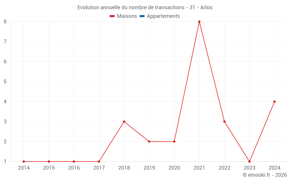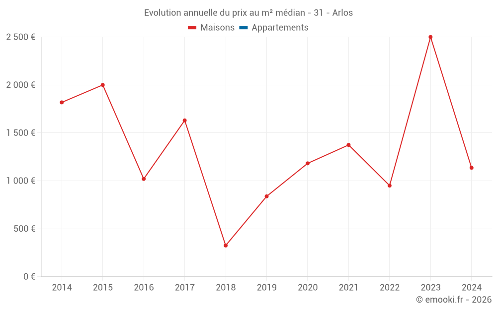 Carte des prix de l'immobilier dans la commune d'Arlos, choississez une section pour voir les transactions par parcelle.