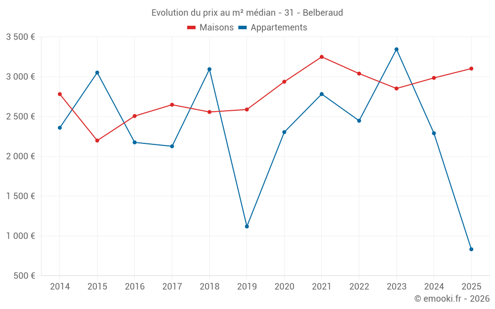Attention, dernière année incomplète. Projections effectuées sur la base des proportions entre semestres de l'année précédente au niveau départemental/national et par catégorie de bien.