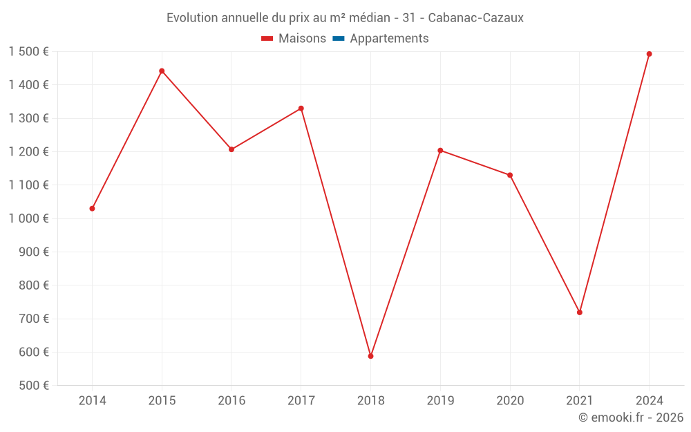 Evolution du prix au m² médian des maisons