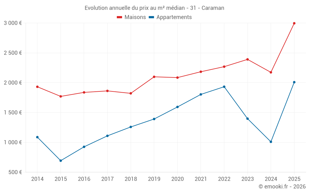 Quel est le prix au m2 des maisons à Caraman ?