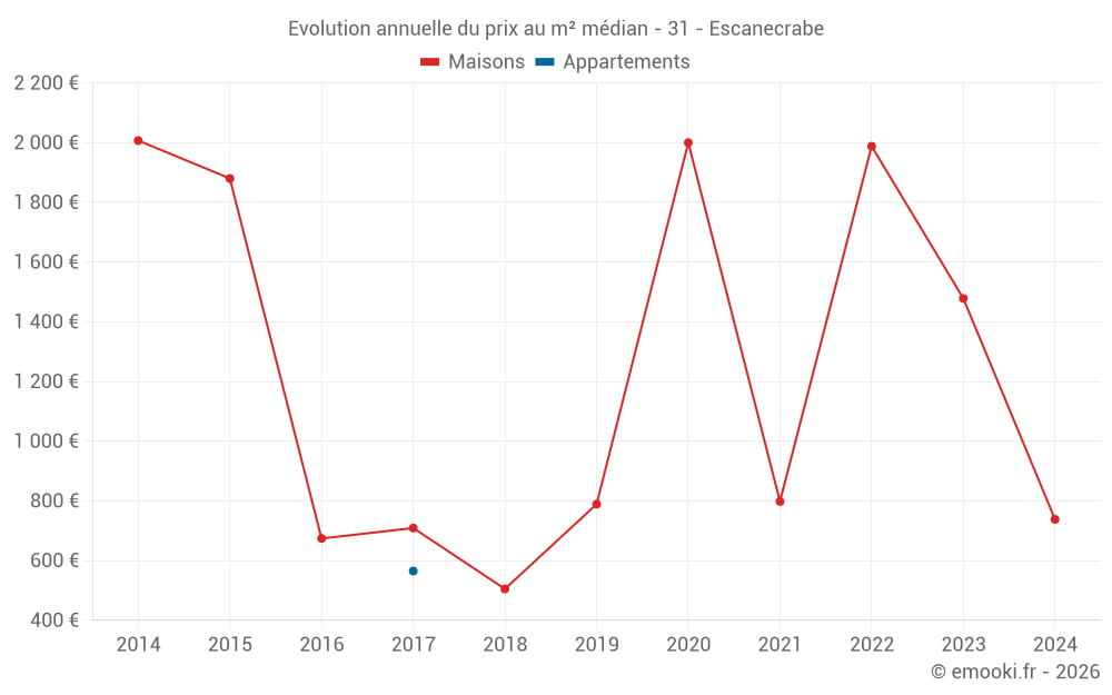 Carte des prix de l'immobilier dans la commune d'Escanecrabe, choississez une section pour voir les transactions par parcelle.