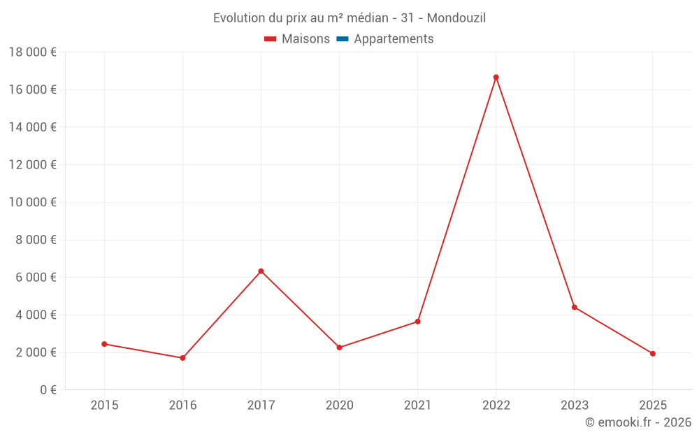 Carte des prix de l'immobilier dans la commune de Mondouzil, choississez une section pour voir les transactions par parcelle.