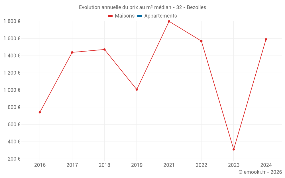 Evolution du prix au m² médian des maisons
