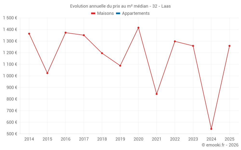Carte des prix de l'immobilier dans la commune de Laas, choississez une section pour voir les transactions par parcelle.