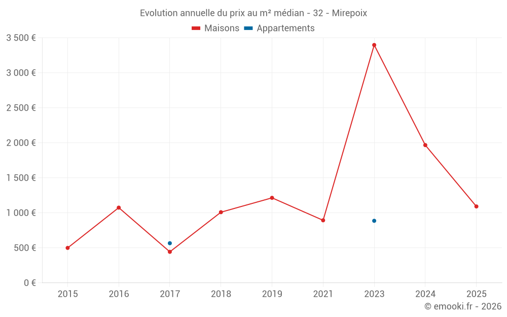Prix médian sur les 2 transactions des 120 derniers mois.
