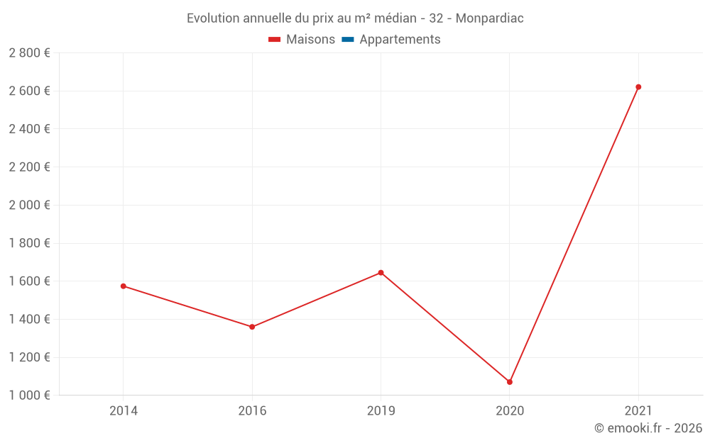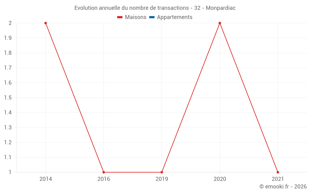 Carte des prix de l'immobilier dans la commune de Monpardiac, choississez une section pour voir les transactions par parcelle.