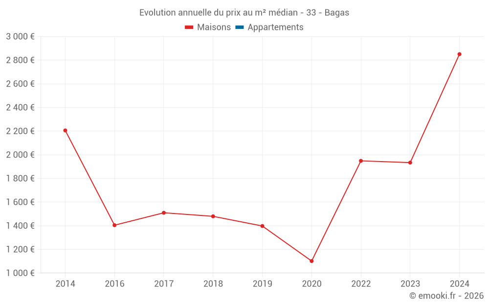 Carte des prix de l'immobilier dans la commune de Bagas, choississez une section pour voir les transactions par parcelle.