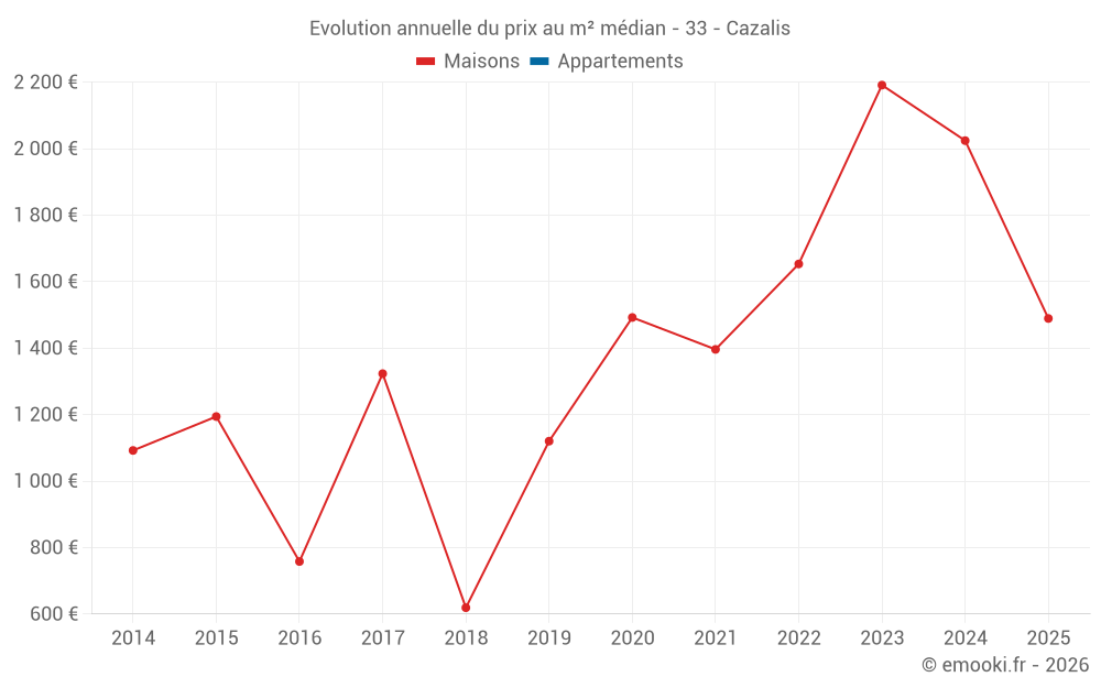Evolution du prix au m² médian des maisons