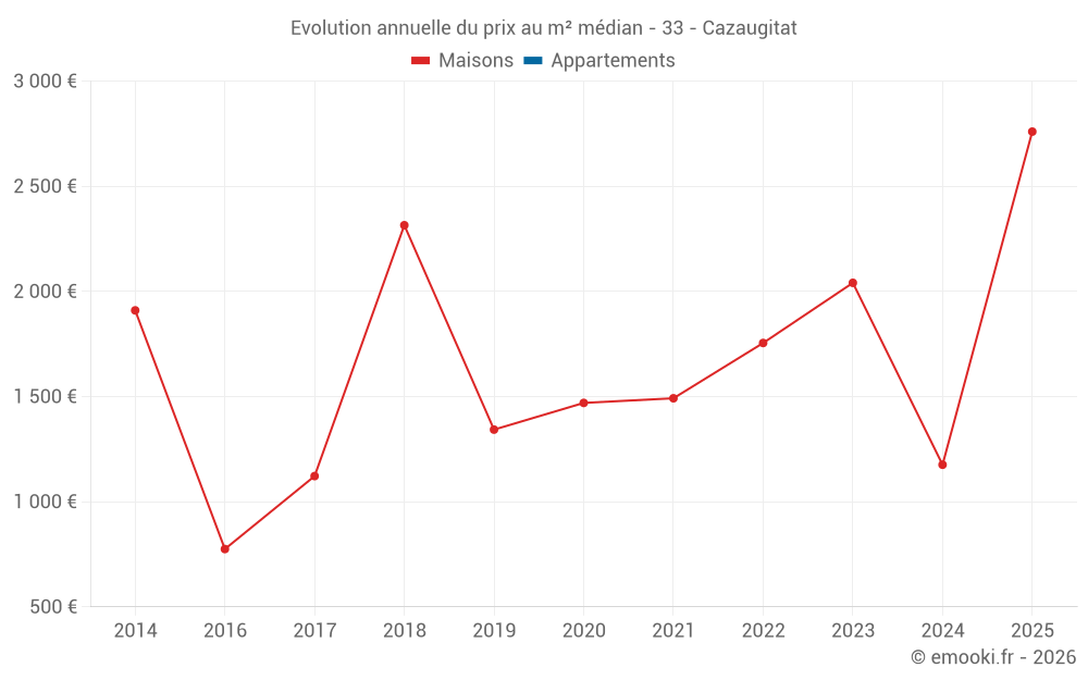 Evolution du prix au m² médian des maisons
