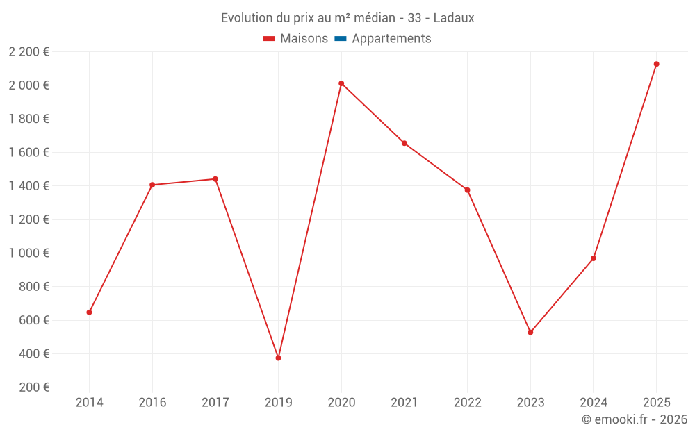 Carte des prix de l'immobilier dans la commune de Ladaux, choississez une section pour voir les transactions par parcelle.