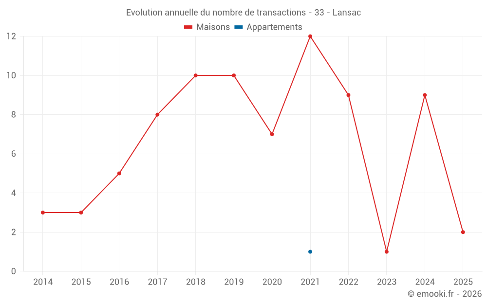 Carte des prix de l'immobilier dans la commune de Lansac, choississez une section pour voir les transactions par parcelle.