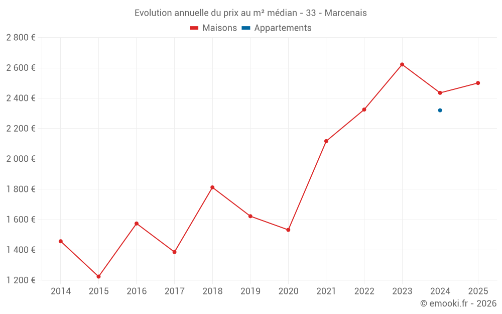 Carte des prix de l'immobilier dans la commune de Marcenais, choississez une section pour voir les transactions par parcelle.