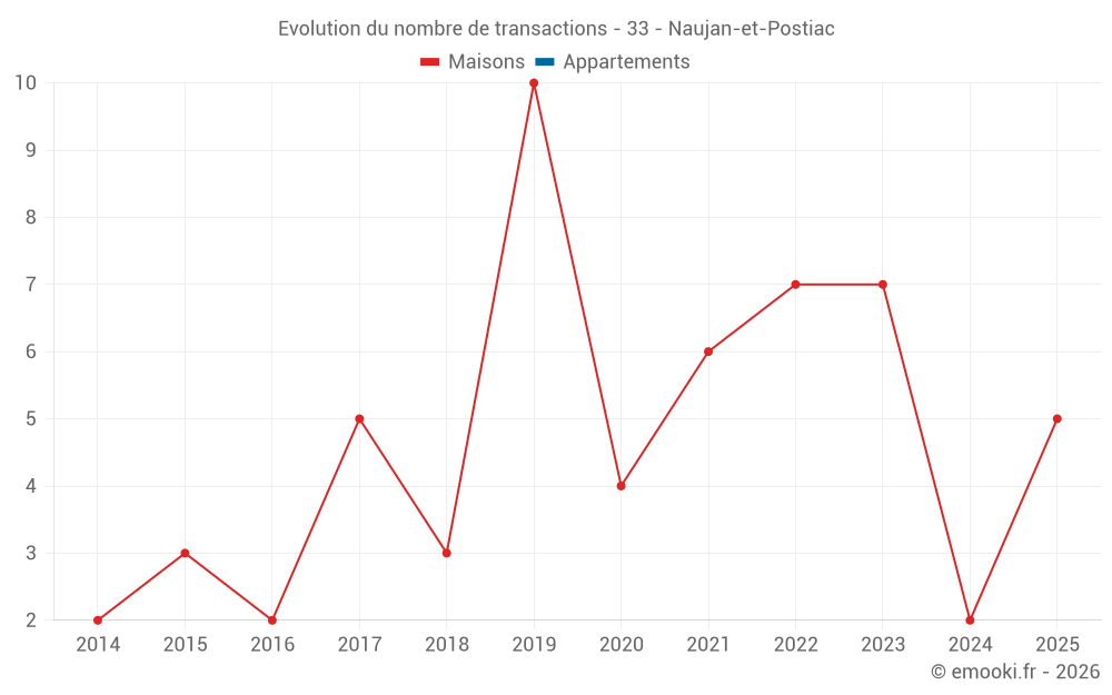Le prix au m² des maisons a diminué de 5.1% depuis 4 ans, mais il a augmenté de 38% en 5 ans.