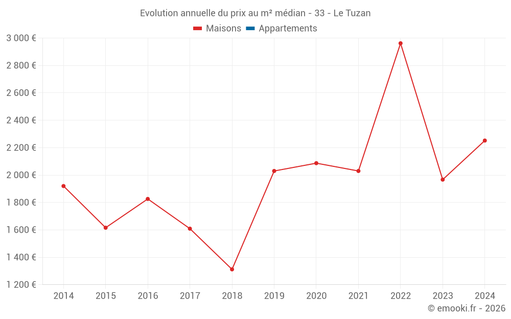 Carte des prix de l'immobilier dans la commune du Tuzan, choississez une section pour voir les transactions par parcelle.