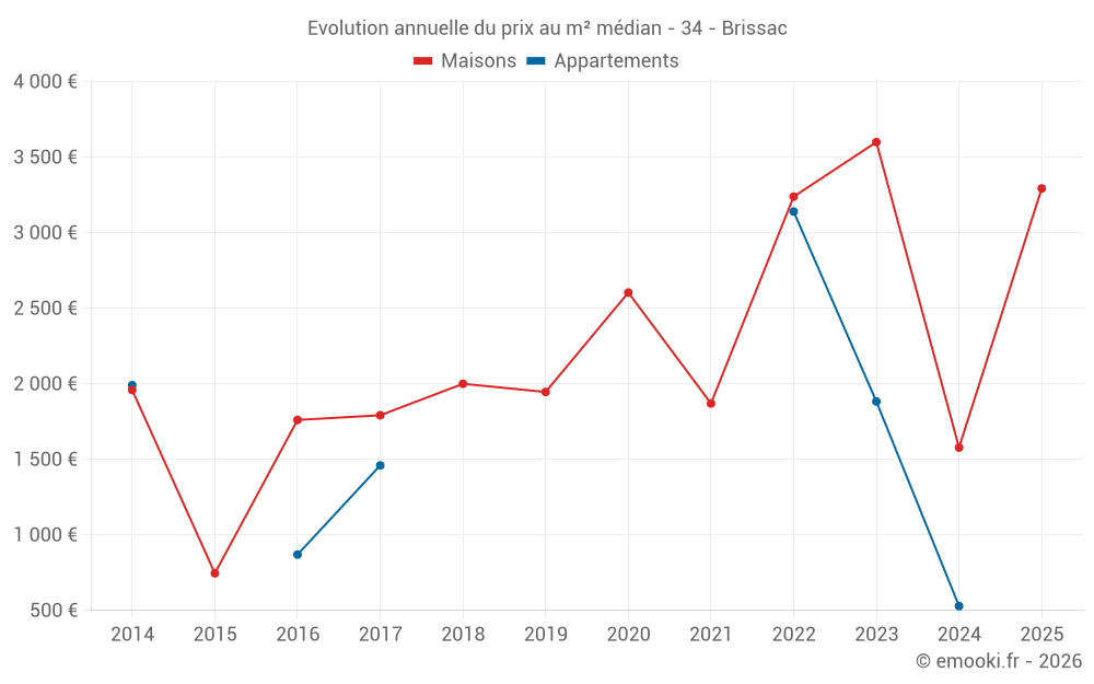 Carte des prix de l'immobilier dans la commune de Brissac, choississez une section pour voir les transactions par parcelle.