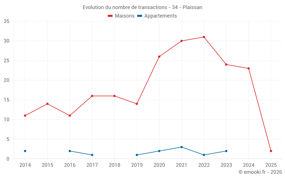 Carte des prix de l'immobilier dans la commune de Plaissan, choississez une section pour voir les transactions par parcelle.