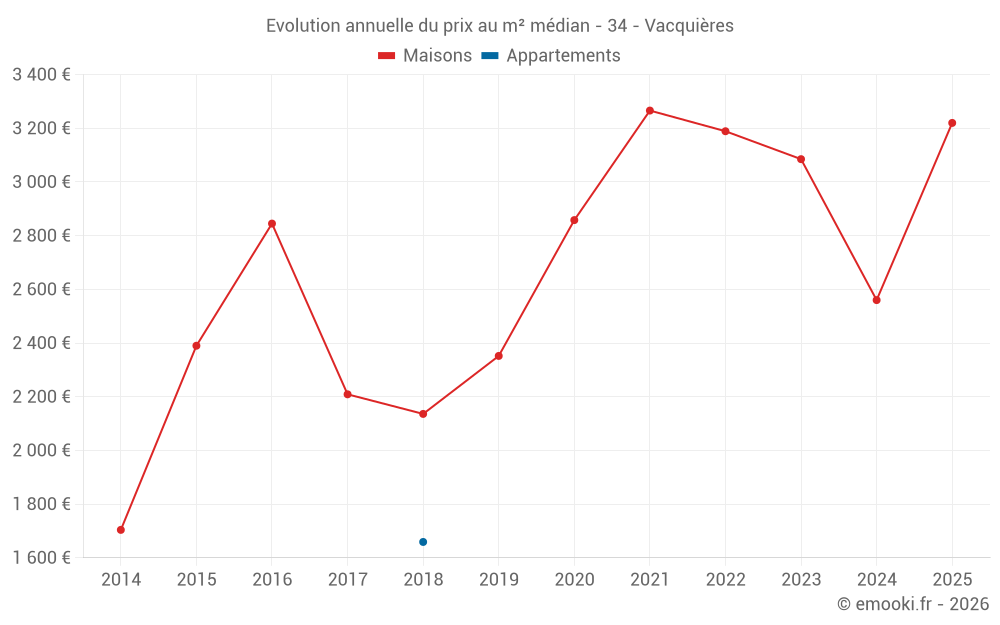 Le prix au m² des maisons a diminué de 1.4% depuis 4 ans, mais il a augmenté de 89% en 11 ans.