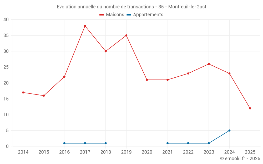 Le prix médian sur les 27 transactions de maisons des 12 derniers mois dans la commune de Montreuil-le-Gast était de 2 482 € par mètre carré pour une valeur foncière médiane de 225 000 €. Sur cette période 60% des transactions se sont situées entre 1 983 et 2 728 € par mètre carré (du 2ème au 8ème déciles).