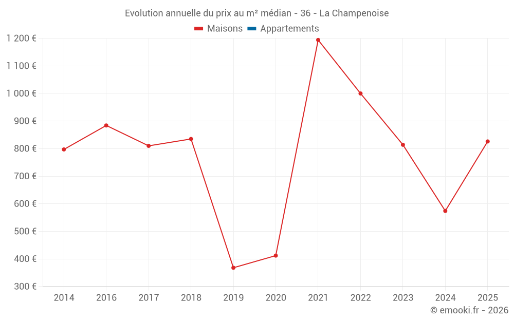 Evolution du prix au m² médian des maisons
