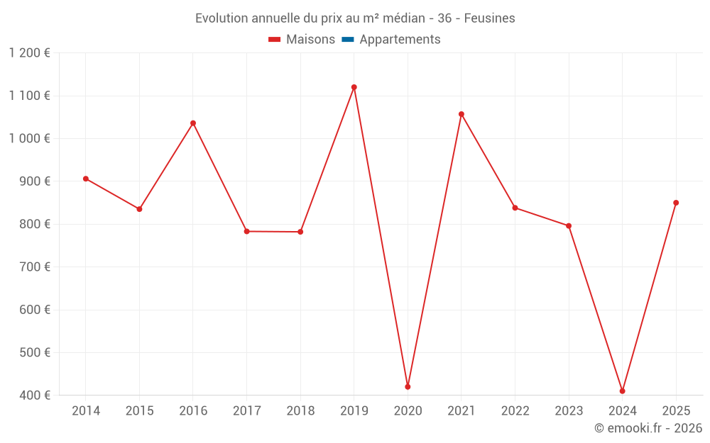 Evolution du prix au m² médian des maisons