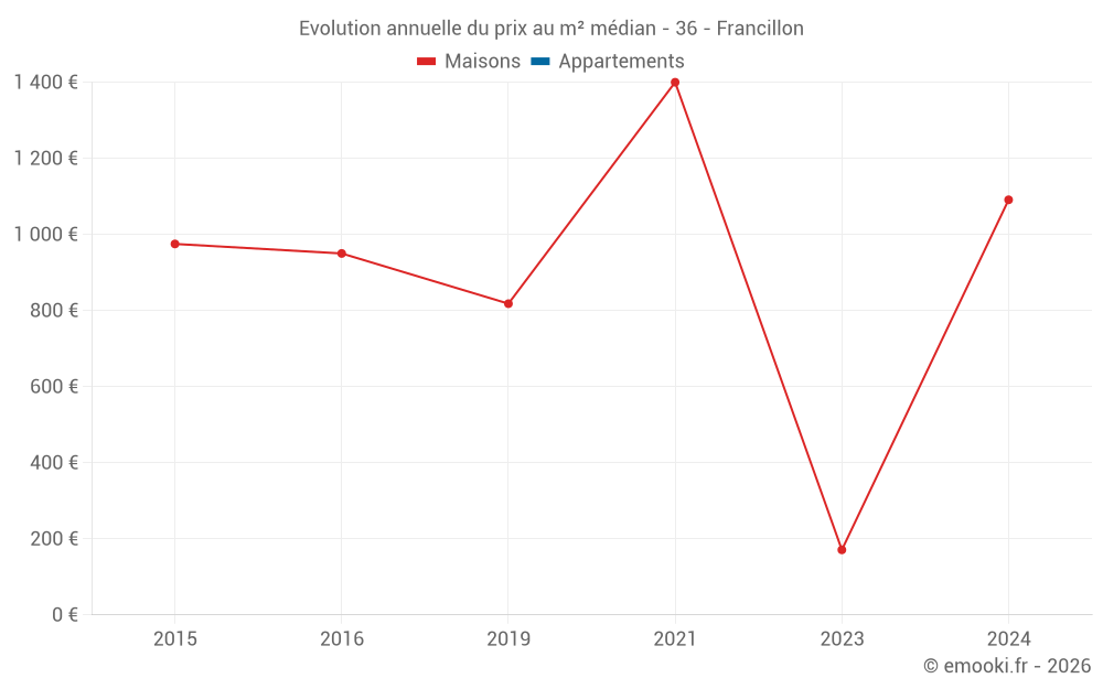 Evolution du prix au m² médian des maisons