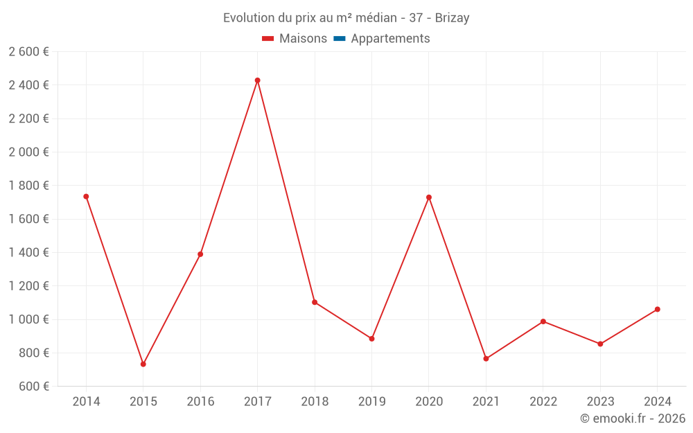 Carte des prix de l'immobilier dans la commune de Brizay, choississez une section pour voir les transactions par parcelle.