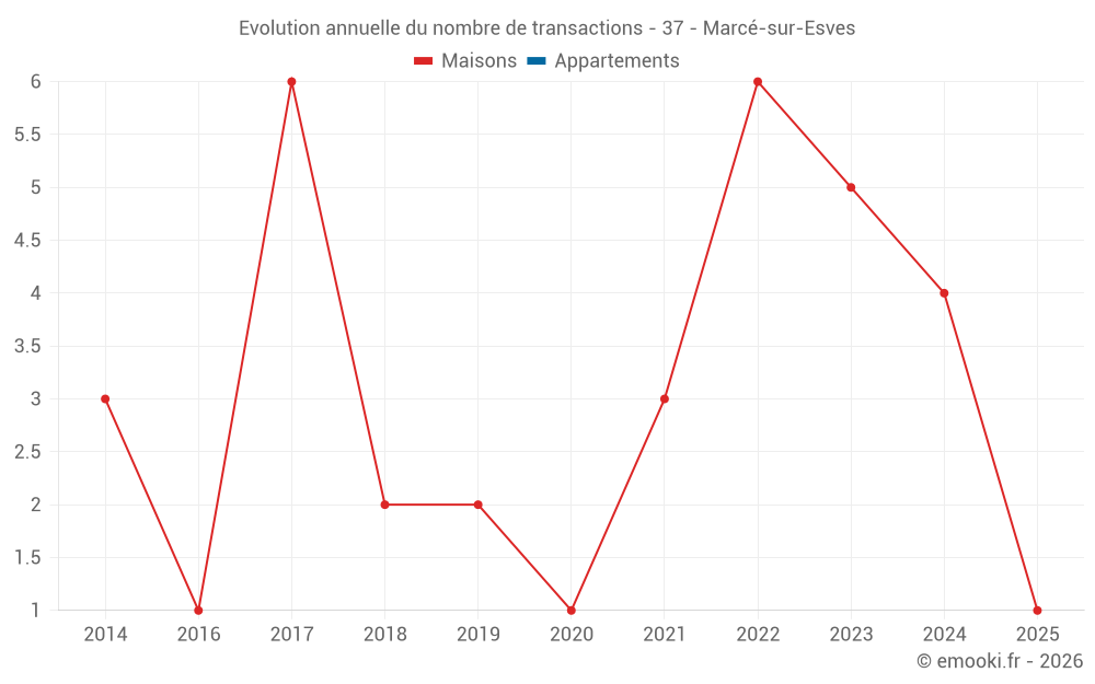 Attention, dernière année incomplète. Projections effectuées sur la base des proportions entre semestres de l'année précédente au niveau départemental/national et par catégorie de bien.